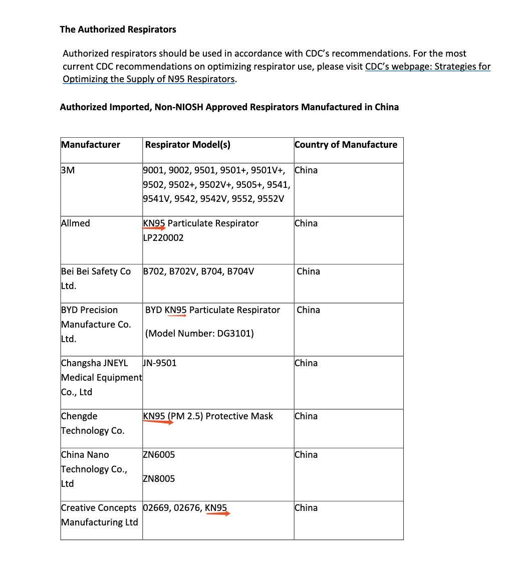 文件顯示,在這些獲得緊急使用授權(quán)的企業(yè)中,使用中國KN95標(biāo)準(zhǔn)生產(chǎn)口罩的達(dá)到26家。