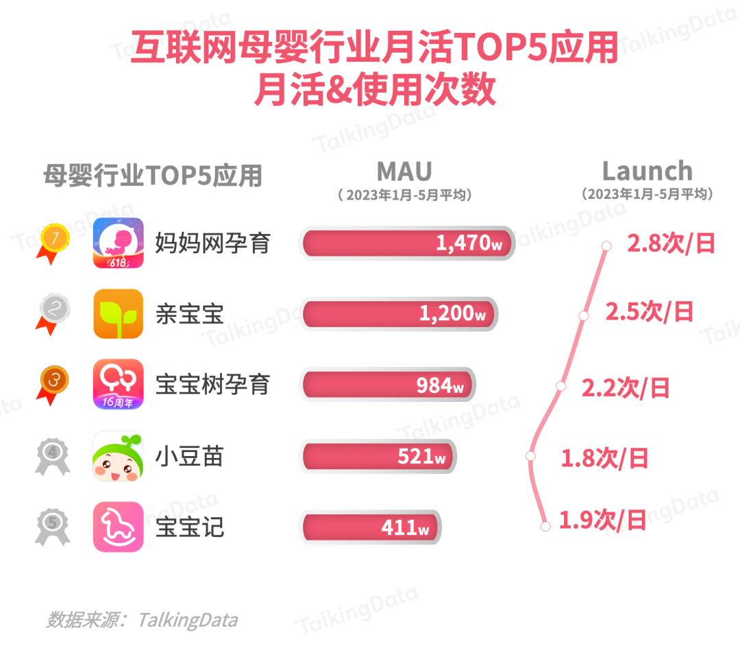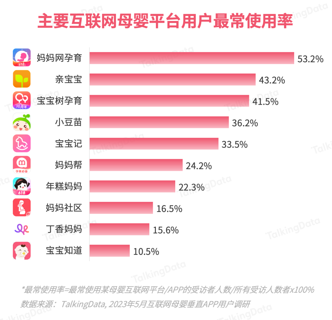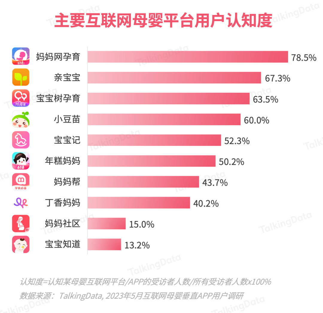基于TalkingData的母嬰行業(yè)應用數(shù)據(jù)及2023 年5月的調研數(shù)據(jù),報告對主要互聯(lián)網(wǎng)母嬰平臺的月活、認知、使用等數(shù)據(jù)進行了統(tǒng)計分析。