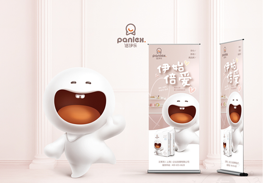 品牌視覺體系構(gòu)建——以“倍伊樂”品牌個性為初構(gòu)思路,純白童真的卡通IP塑造,極具識別性的輪廓造型,與品牌標志形成呼應(yīng),有效鞏固品牌核心視覺認知。